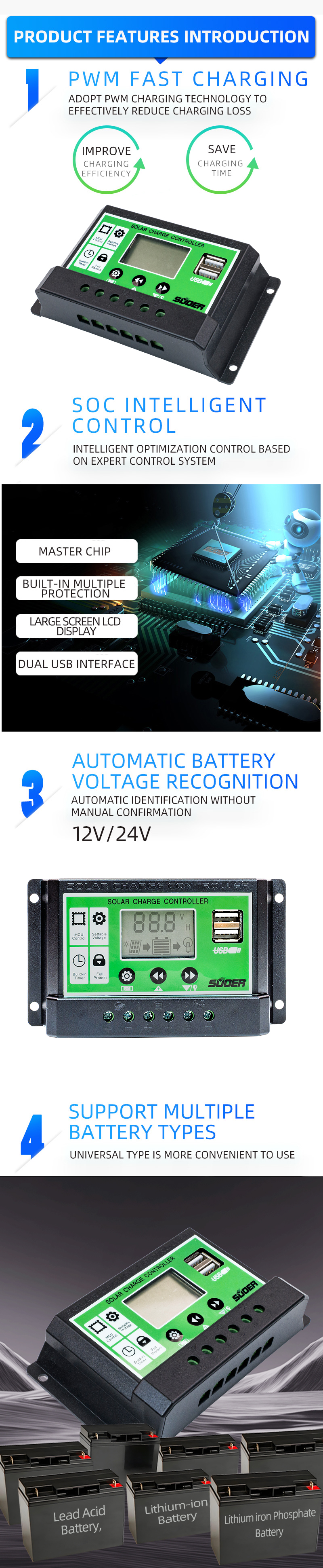 6. Adjustable charging voltage(Low:14.2V,Default:14.5V,High:15.2V)